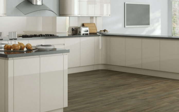 The Larissa Gloss door epitomises contemporary style with its sleek, 22mm thick, high-gloss painted slab design and integrated J-profile handle.